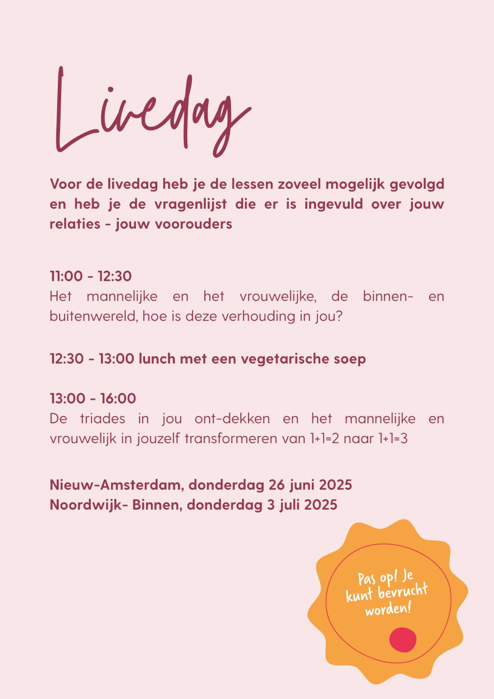 " Tijdens een live dag is het heerlijk om je onder te dompelen in een onderwerp. Willemijn zorgt altijd voor nieuwe stof, zet mij weer in verbinding met mijzelf"